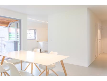 Deze is gelegen in een doodlopend straatje op de tweede verdieping van residentie Karmeliet. Zowel aan de voorzijde als achterzijde bevindt zich een terras.