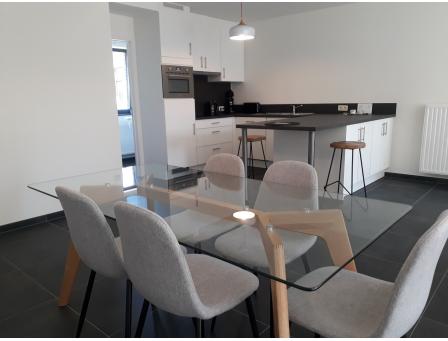 Dit gemeubeld appartement over een modern ingerichte leefruimte met een uitgeruste keuken, een eigen zuid georiënteerd terras.